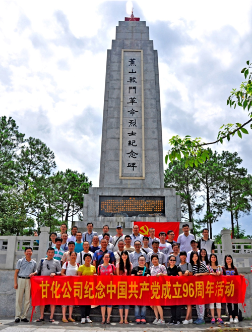 为纪念中国共产党建党96周年,并进行爱国爱党爱岗教育,2017年7月1日上午,甘化公司党委组织本部和子公司全体党员到新兴蕉山革命烈士陵园,开展了“不忘初心,牢记宗旨”主题党日活动,重温入党誓词,以庄严神圣的方式庆祝党的生日。