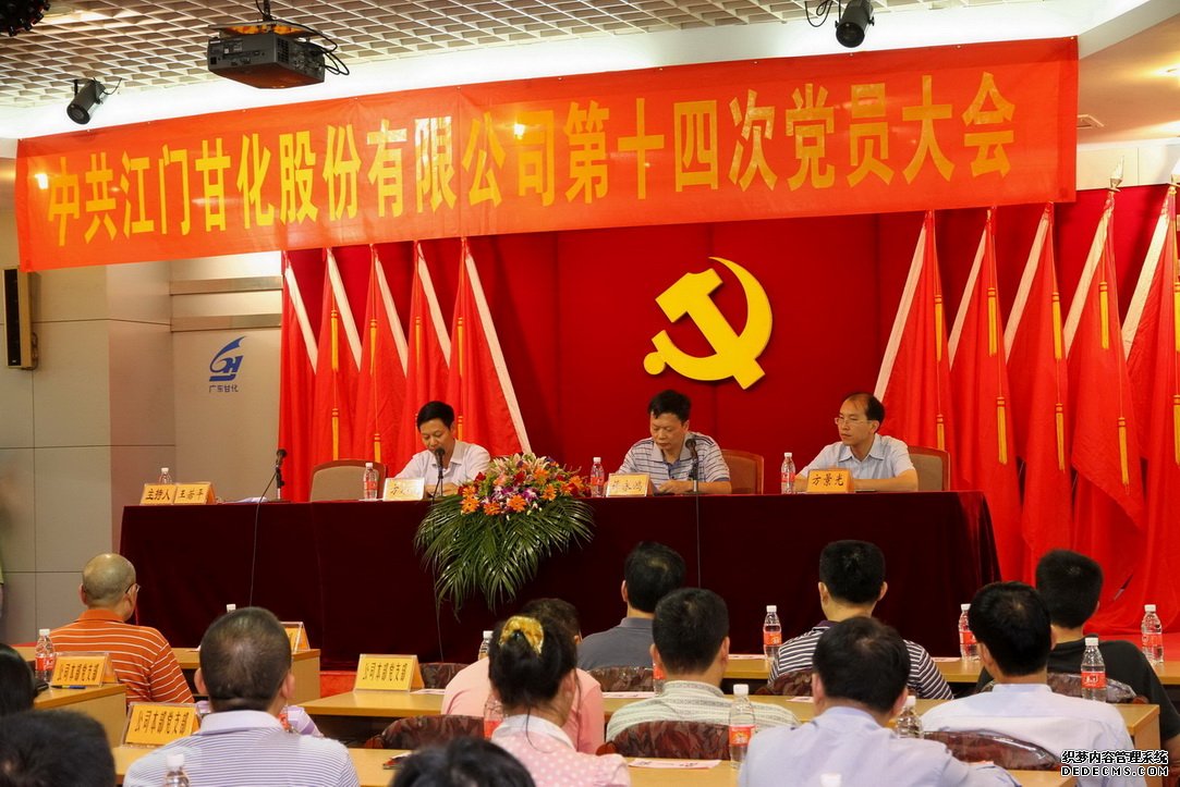 中国共产党江门甘蔗化工厂(集团)股份有限公司第十四次党员大会于2012年9月25日下午在甘化大厦十七楼会议大厅举行,历时半天。大会议程为选举产生中共江门甘化股份公司第十四届委员会。大会应到会党员数95名,实到会人数95名(有19名离岗退养党员已办理委托投票,视为到会人数)。