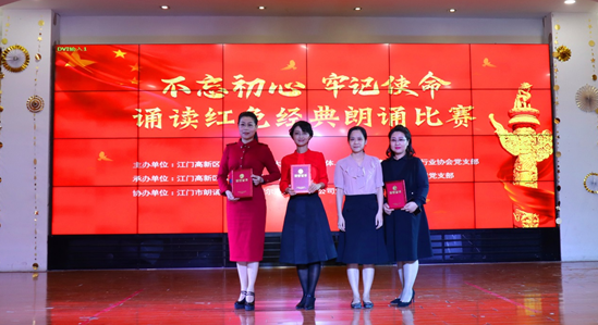 甘化公司人力资源部副经理陆萍参加由江门市高新区(江海区)火炬大厦党建共同体、江门国家高新区光电行业协会主办,江门市高新区(江海区)税务局第四党支部、江门市江艺实业有限公司党支部承办的“不忘初心 牢记使命”诵读红色经典朗诵比赛。经过初赛、复赛多场激烈的角逐,于2019年10月18日的决赛中,她以红色经典作品《雪山小太阳》荣获二等奖。