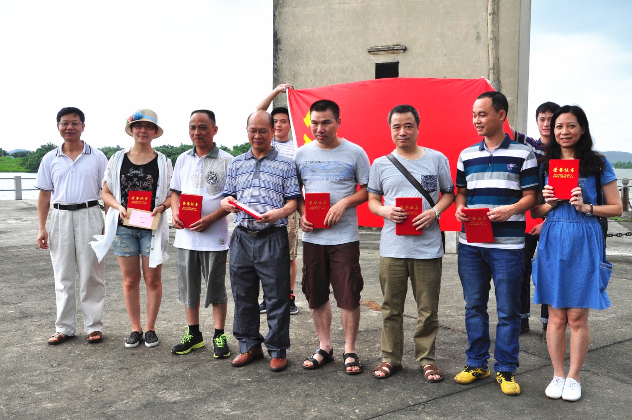 参观当天,艳阳高照,在欢声笑语的旅游车上,建党纪念活动首先在热烈的党史知识有奖问答竞赛拉开了帷幕。当答题告罄,奖品纷纷易主时,汽车就抵达开平南楼。该楼建于1921年,楼高七层19米,每层均有机枪和探照灯,是司徒氏人为防盗贼而建。抗战时期,七名归侨及侨属青年曾在此坚守八天九夜痛击日军,最后弹尽粮绝,壮士全部捐躯。七壮士雕塑雄壮威武,英灵如塔,蓝天之下,民族精神直冲云霄。我们就在当年这一浴血奋战的所在默默地缅怀,庄重地对获得2015年度先进党支部和优秀党员进行表彰,展开鲜艳的党旗合影……过程中,我们几乎听到烈士群像的呼吸。