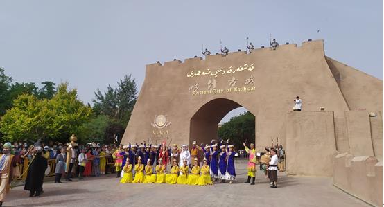 观看老城开门仪式,城内建筑充满伊斯兰和维族风情,别有趣味。