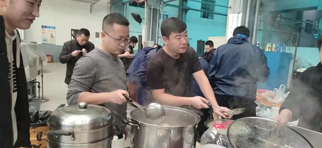 活动现场,所有员工热情高涨,分别从家里带来了电磁炉、煮锅、面盆、擀面杖等厨房用具,并分头提前采买了酸菜、猪肉、韭菜、鸡蛋、茴香等等馅料。大家欢天喜地齐聚一堂,年会活动在马震峰总经理的新年致词中拉开序幕。
