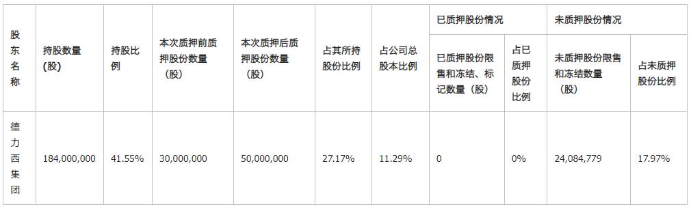 广东beat365首页股份有限公司(以下简称“公司”)于近日接到控股股东德力西集团有限公司(以下简称“德力西集团”)通知,获悉其所持有本公司的部分股份被质押,具体事项如下: